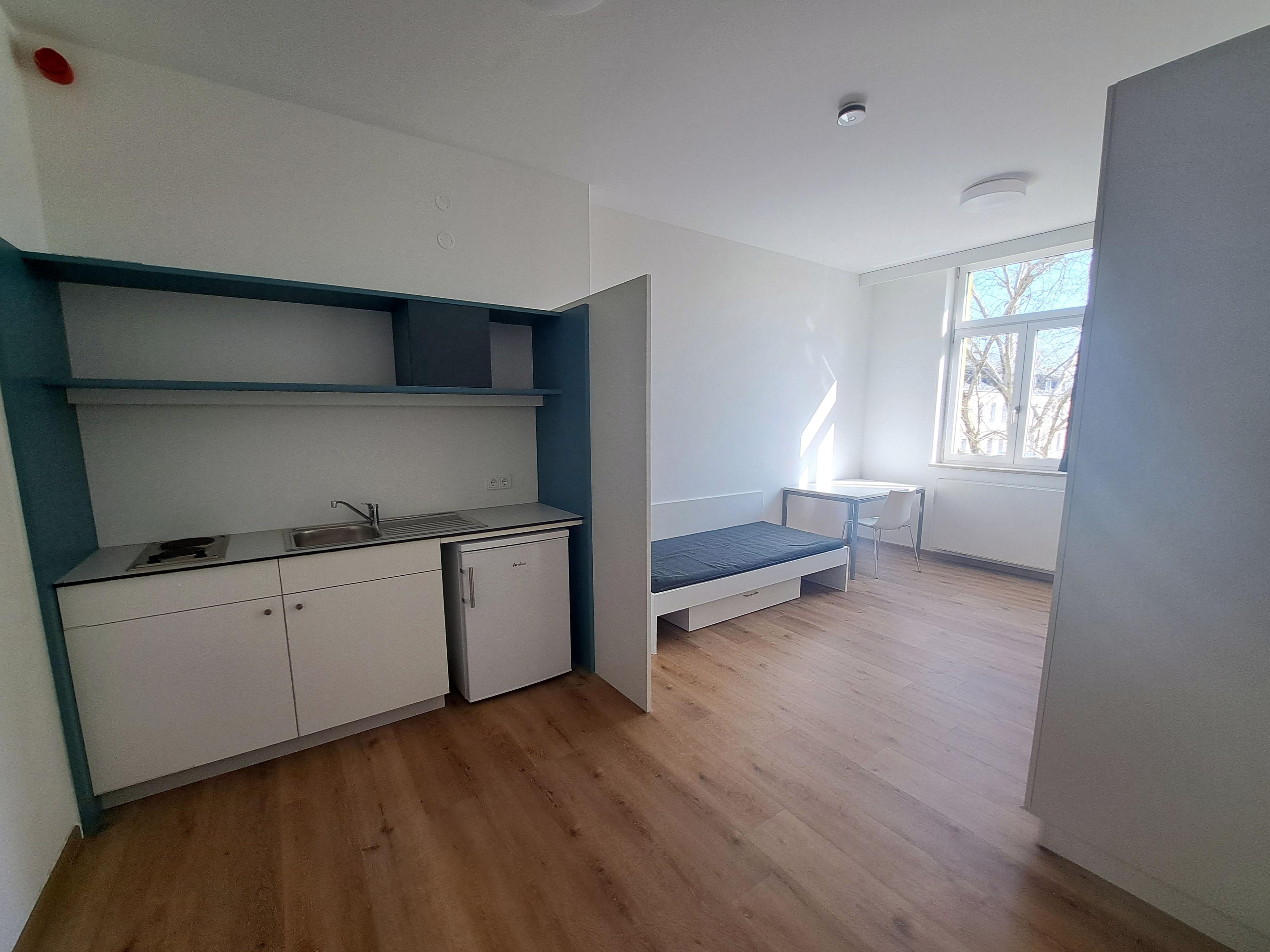 The tenant lives alone in a private room and has a kitchenette and bathroom of her/his own. - Single rooms in a shared apartment for 2 persons (3rd floor = attic)